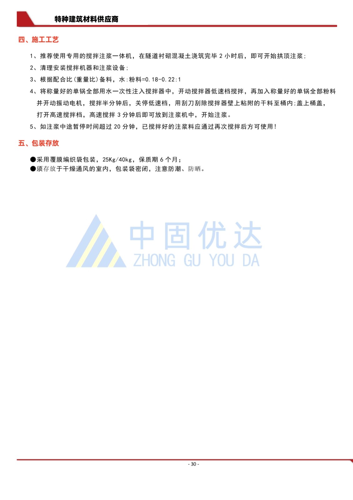 衬砌微膨胀注浆结合料